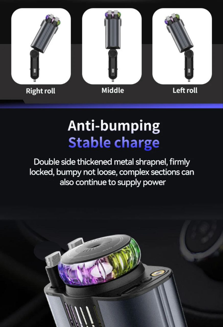 - 5 en 1 : Le chargeur de voiture rétractable starry sky est livré avec 2 câbles rétractables et un port USB-C supplémentaire pour charger plusieurs appareils en même temps.